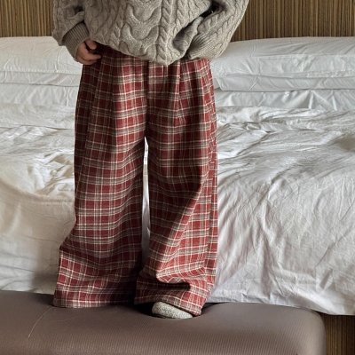 비다이어리.도브와이드기모체크팬츠