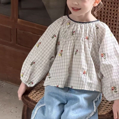 아이아이.봄)메이플자수블라우스