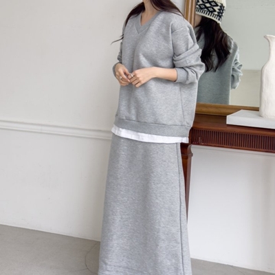 ro.레이어드브이넥치마세트