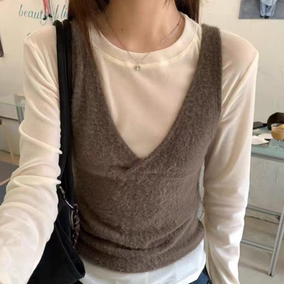 on.[VT124]앙고라브이넥니트조끼