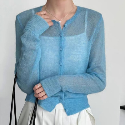 on.[CD621]시스루모헤어라운드가디건