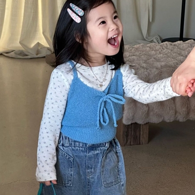 비다이어리.블루플라워티셔츠뷔스티에세트