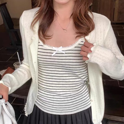 on.[CD633]펀칭가디건스트라이프나시세트