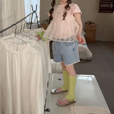 아이아이.레이스물결데님쇼츠
