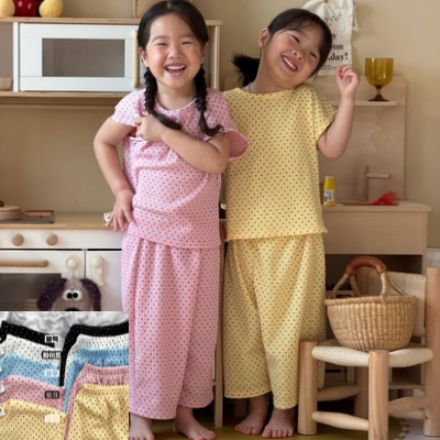 한여름까지 쭉- 입혀주기 좋은 귀여운 도트 상하복이예요